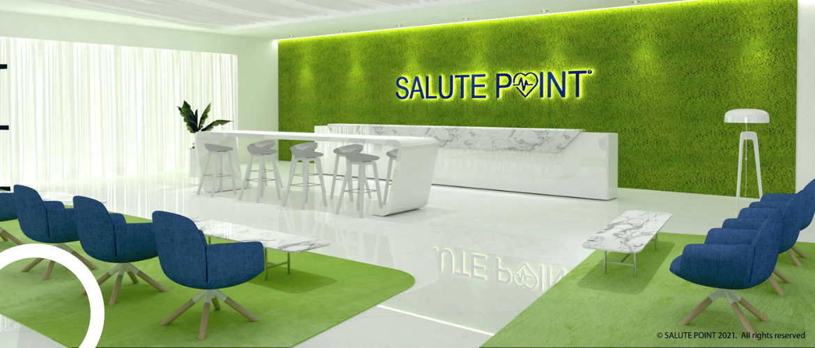 The setup of SALUTE POINT® Centers will have the same characteristics, adhering to the guidelines of the SPLab® creative concept (common area furnishings, graphics, window decals, software, uniforms, etc.). Adjustment measures are planned for businesses already operating in the sector that intend to expand their offerings by affiliating.